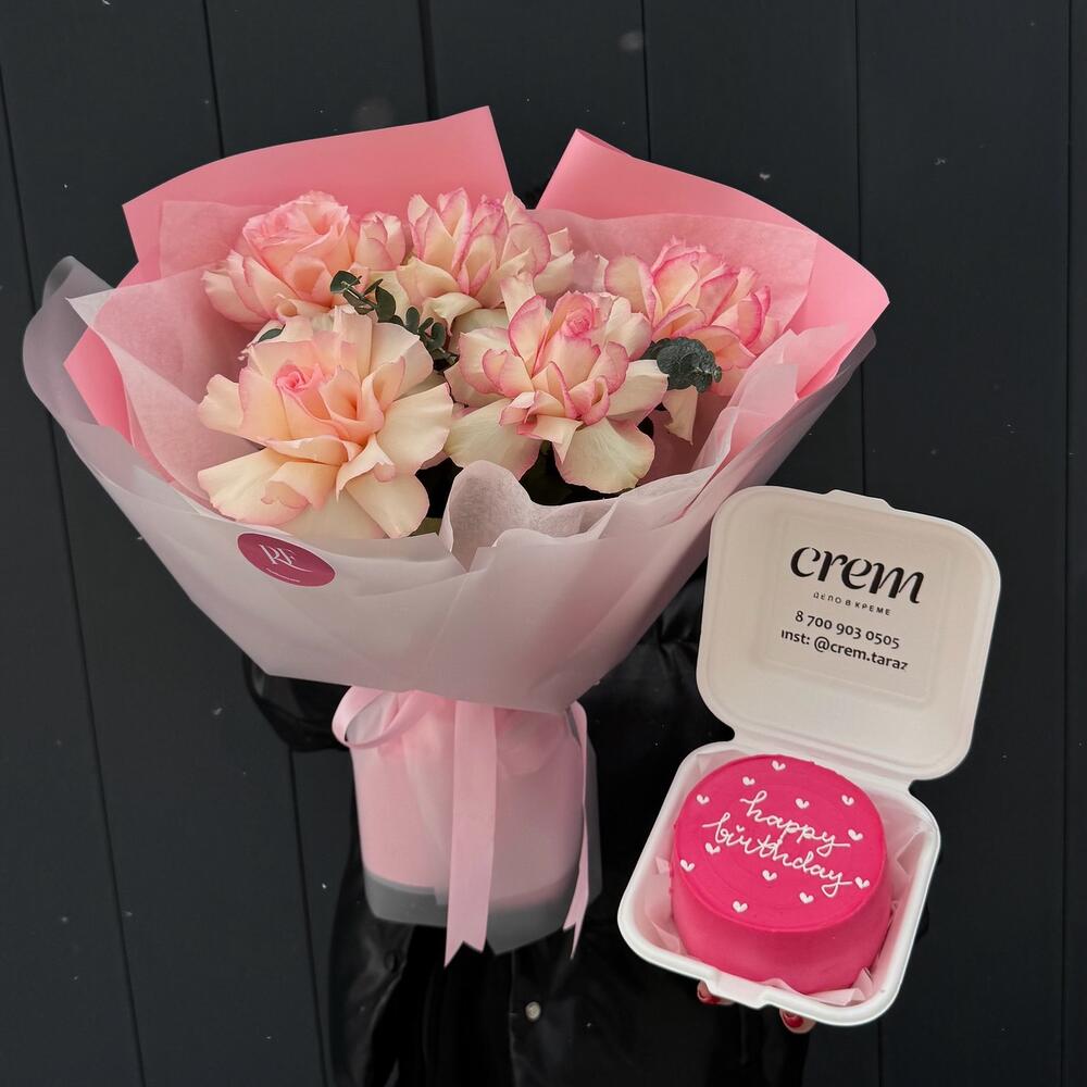 Eucalyptus - 1 pcs roses - 5 pcs bento cake - 1 pcs
