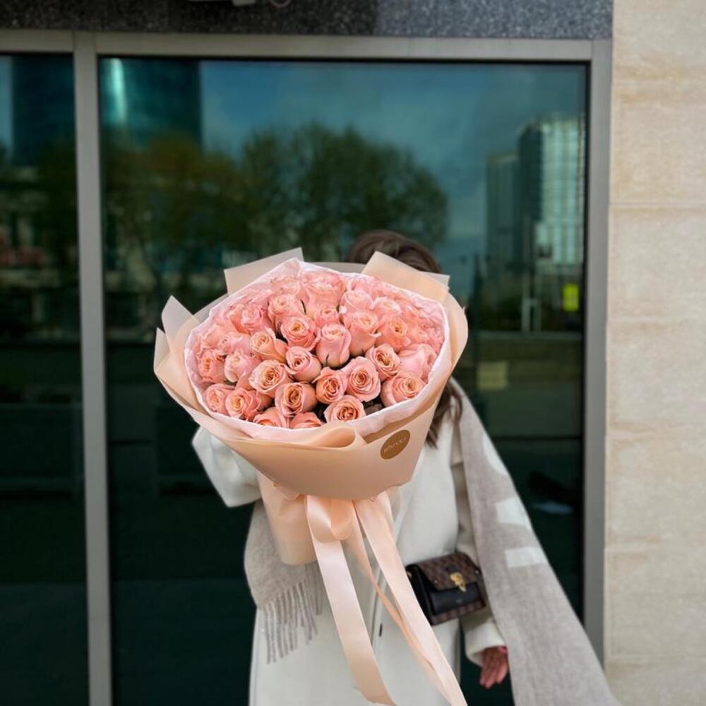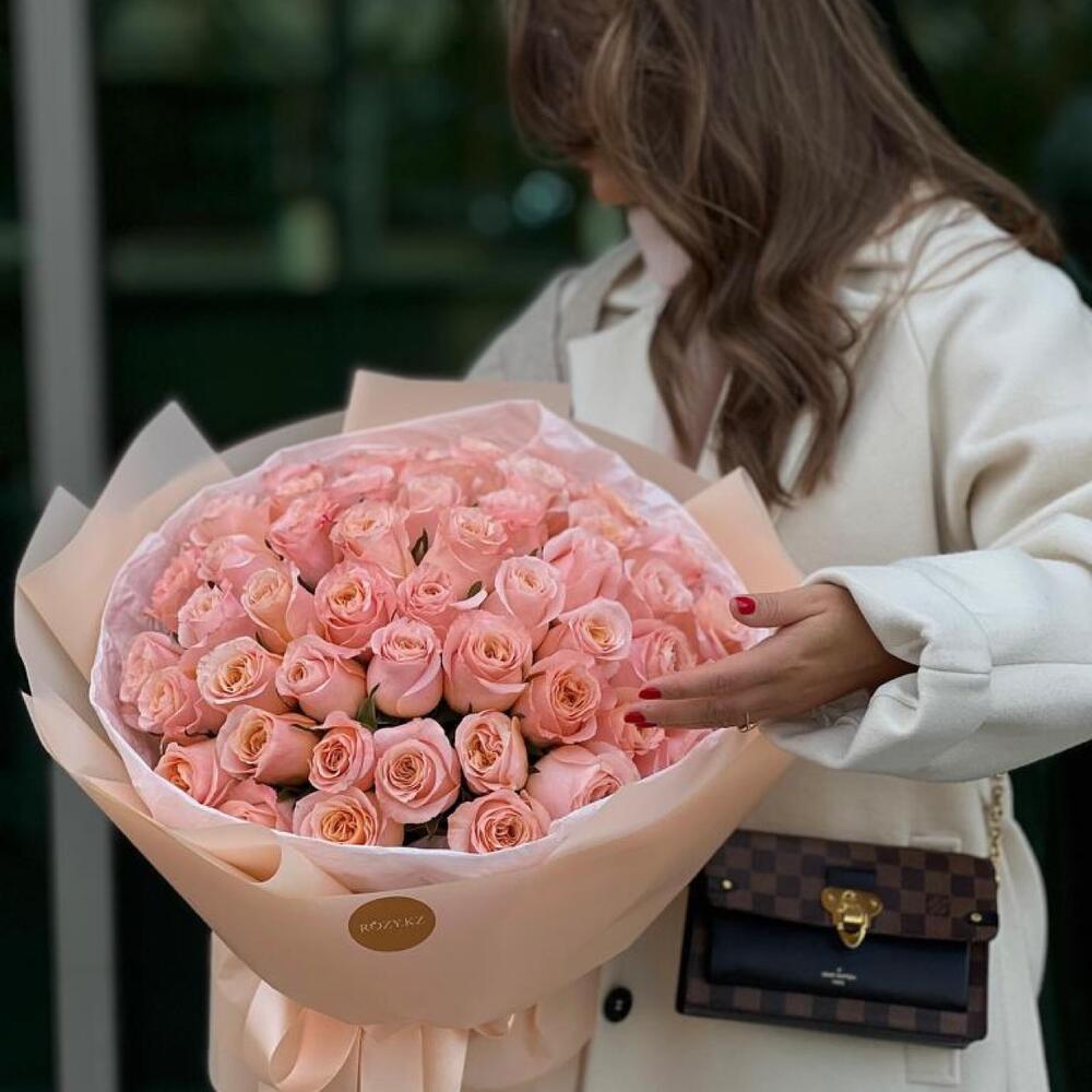 Bouquet of 51 coral roses in branded packaging (29.45)