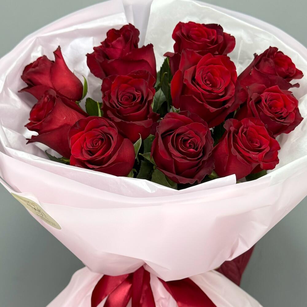 Букет из красных голландских роз Витамины для цветов и открытка в подарок 🎁