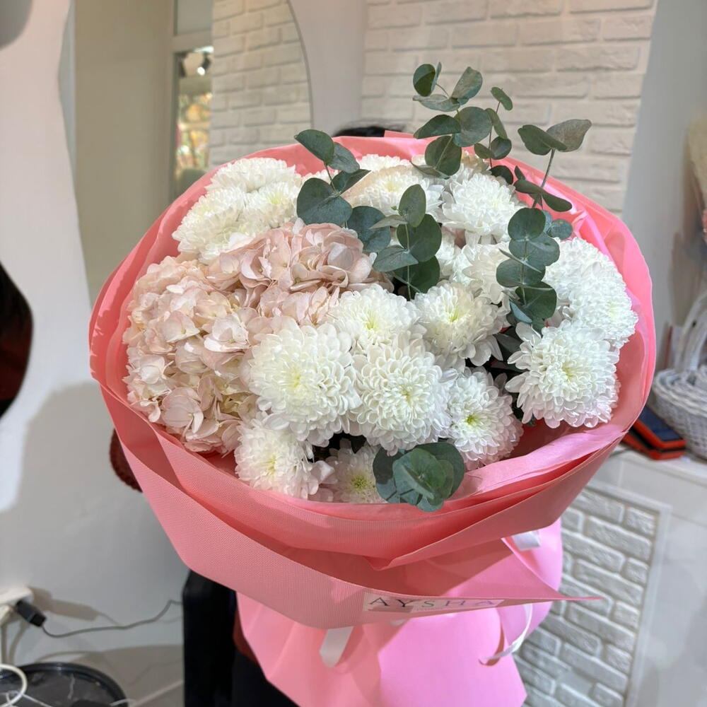 Hydrangea - 1 pcs Chrysanthemum bush - 4 pcs Eucalyptus Mix - 1 pcs