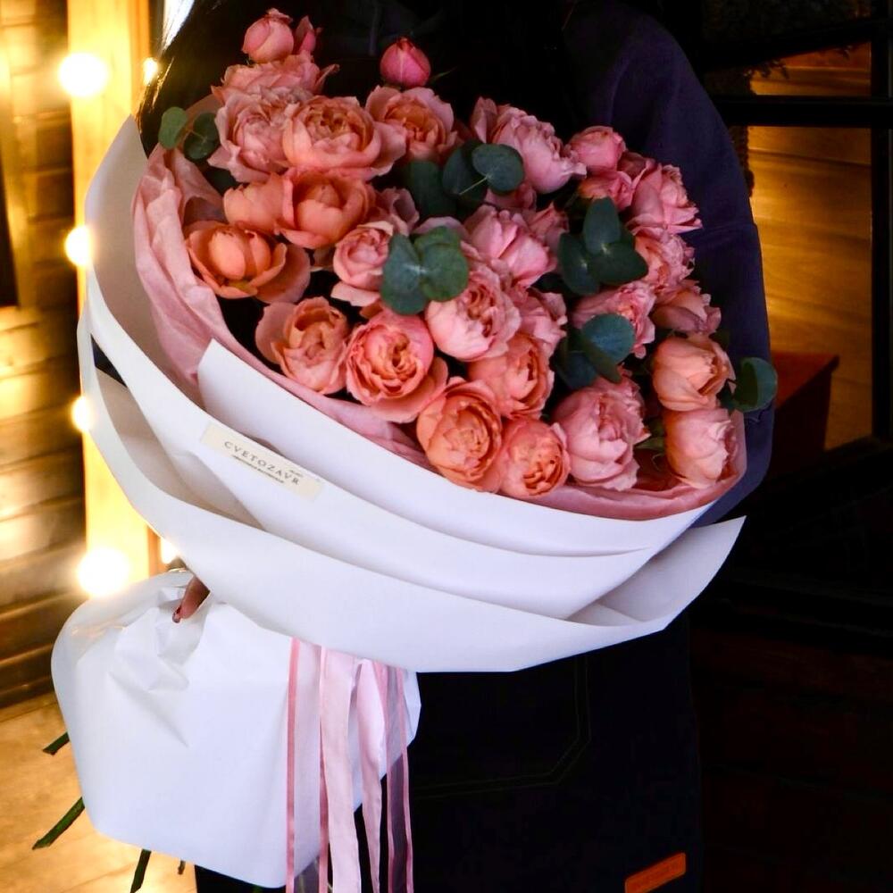 Eucalyptus - 1 pcs Designer packaging - 1 pcs bush rose juliet - 9 pcs