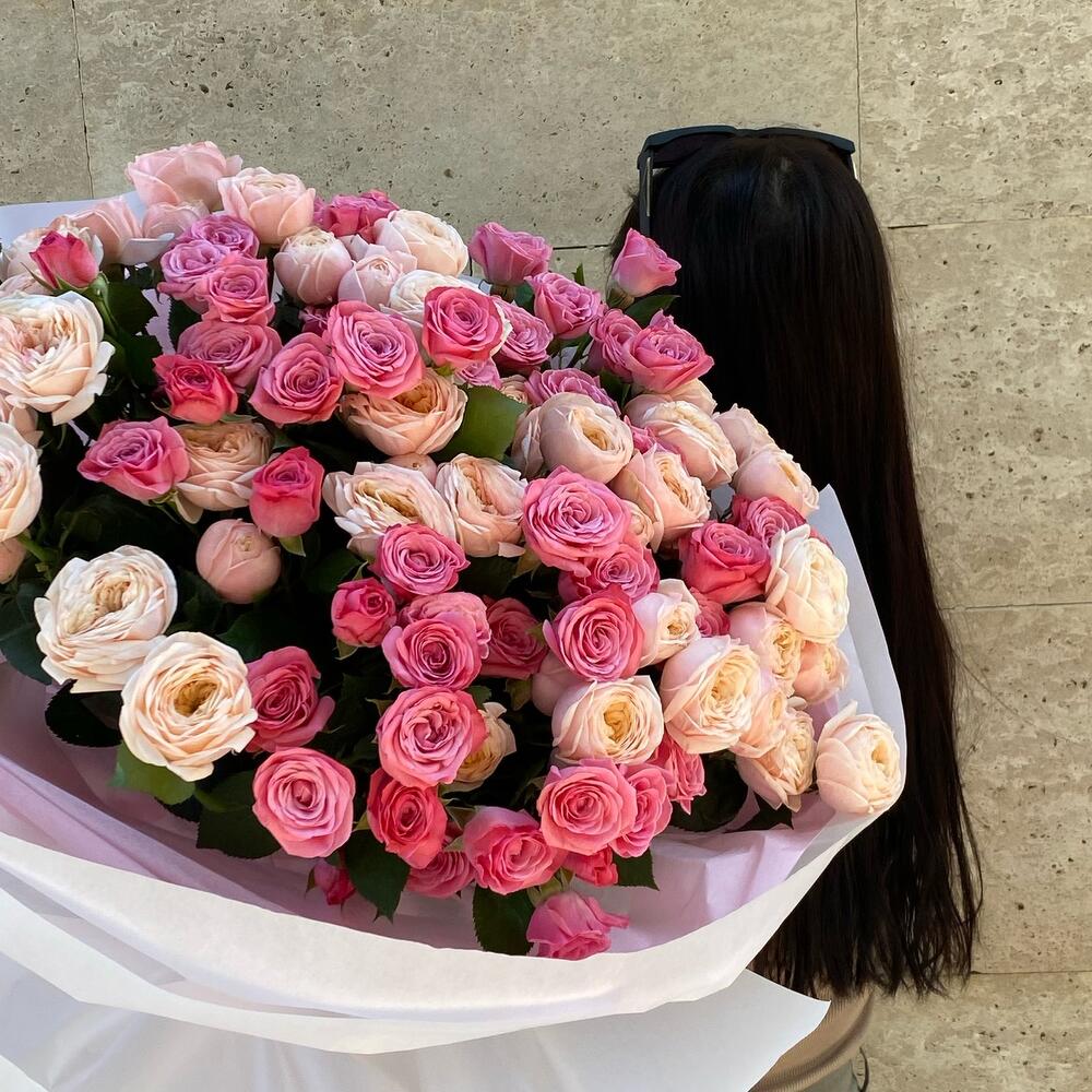 Сочетание яркого и нежного розового в большом букете 🌸
