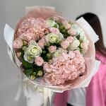 Hydrangea - 3 pcs Bush rose - 3 pcs White rose - 5 pcs Designer packaging - 6 pcs