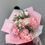 Gypsophila - 2 pcs Hydrangea - 3 pcs Eustoma - 5 pcs