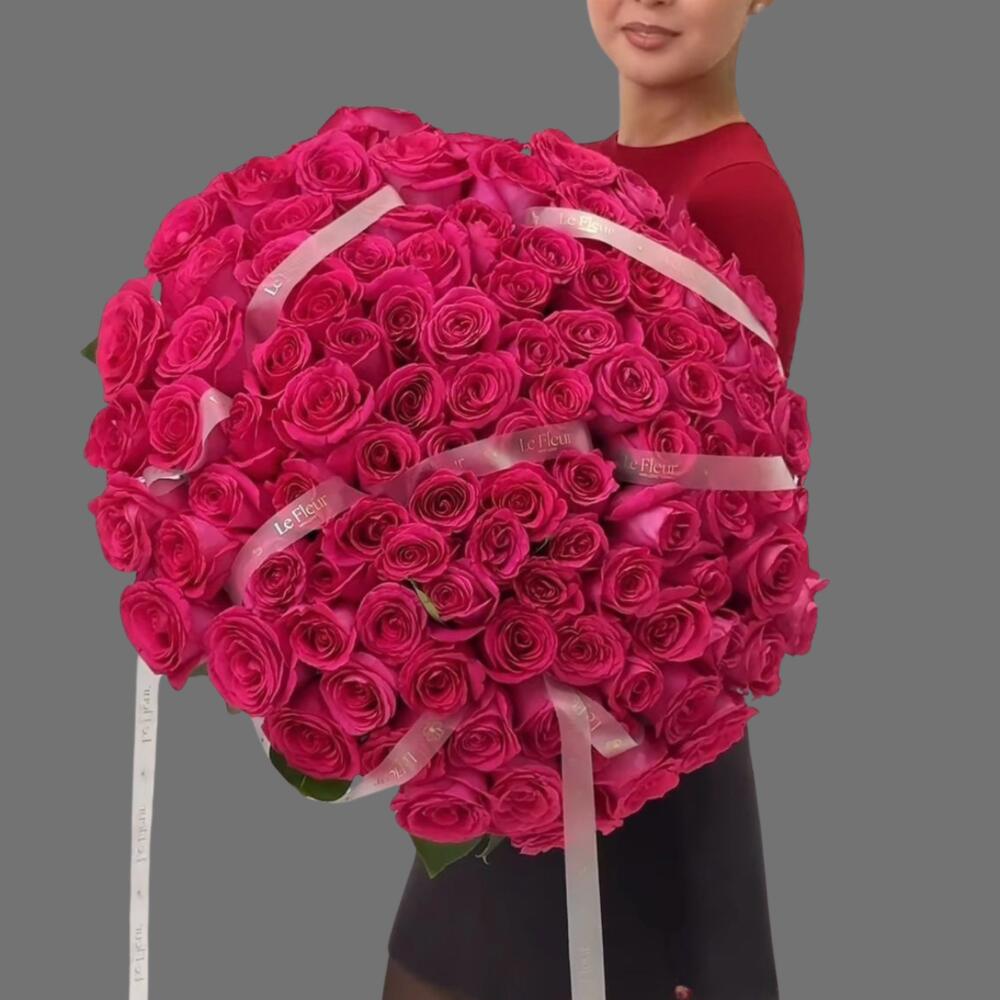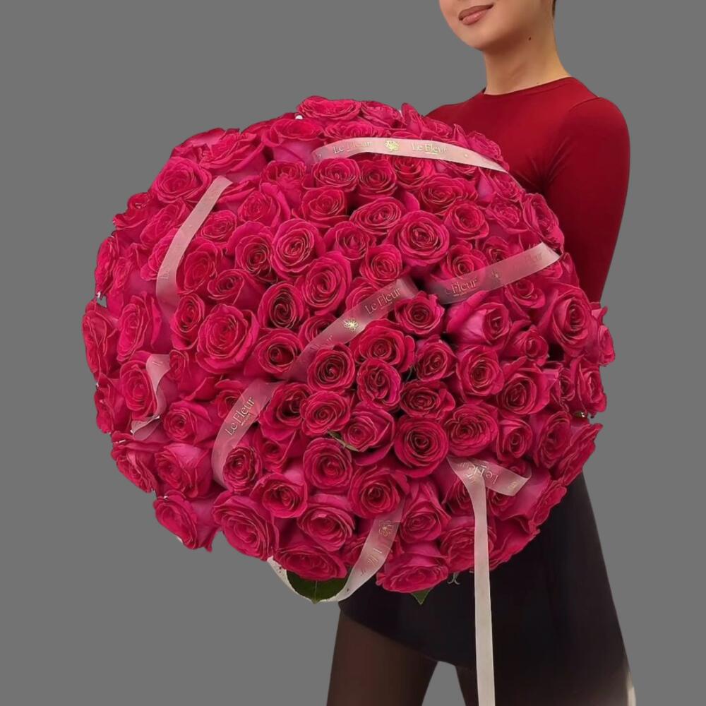 Состав: 101 роза. 💬 Букет, с которым невозможно остаться незамеченным. Признание, оформленное цветами.