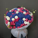 Luxurious bouquet in noble shades of blue, pink and white — a striking gift that immediately attracts attention. A lush hydrangea combined with delicate spray roses and decorative accents creates a sense of sophistication and style. Perfect for a birthday, an anniversary, a declaration of love, or a special occasion.
