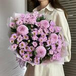 Chrysanthemum bush - 10 pcs Satin ribbon - 2 pcs Designer packaging - 6 pcs momoko - 5 pcs