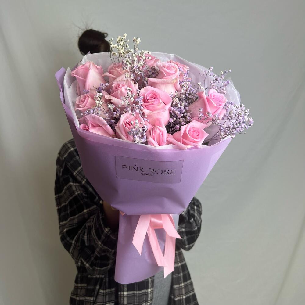 Очень нежный букет , сочетание розы и Гипсофилы подчеркнуто яркой фирменной упаковкой, в подарок к букету идет фирменная открытка