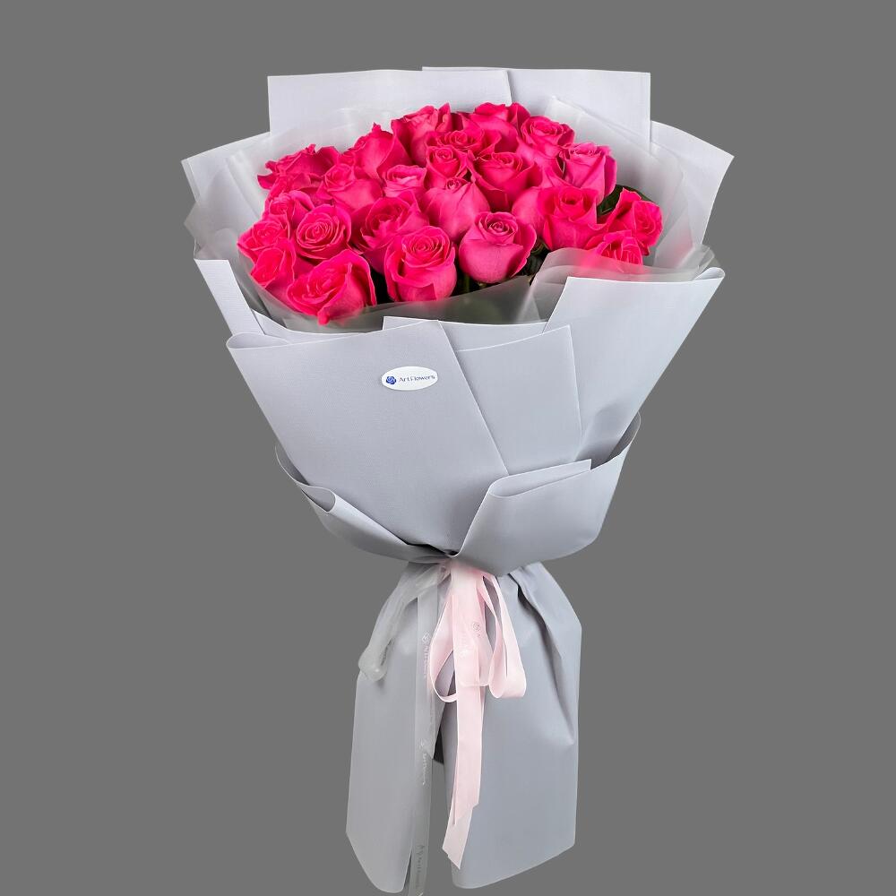 Великолепные 25 голландских роз высотой 90 см в насыщенном малиновом оттенке. Этот букет сочетает в себе страсть, огненность и изысканность, создавая по-настоящему впечатляющий эффект