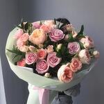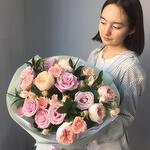 Bush rose - 3 pcs peony - shaped roses - 7 pcs pink roses - 9 pcs