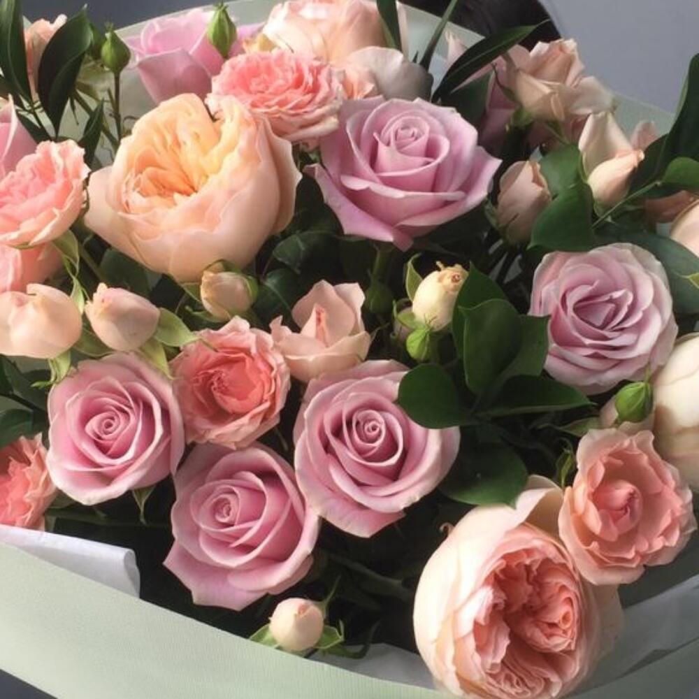 Bush rose - 3 pcs peony - shaped roses - 7 pcs pink roses - 9 pcs