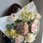 Matthiola - 2 pcs Rose - 3 pcs carnations - 2 pcs oncidium - 2 pcs dutch hydrangeas - 1 pcs