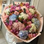 Eucalyptus - 4 pcs Dianthus - 10 pcs Peony - shaped rose - 15 pcs hydrangeas - 10 pcs Alstroemeria - 7 pcs