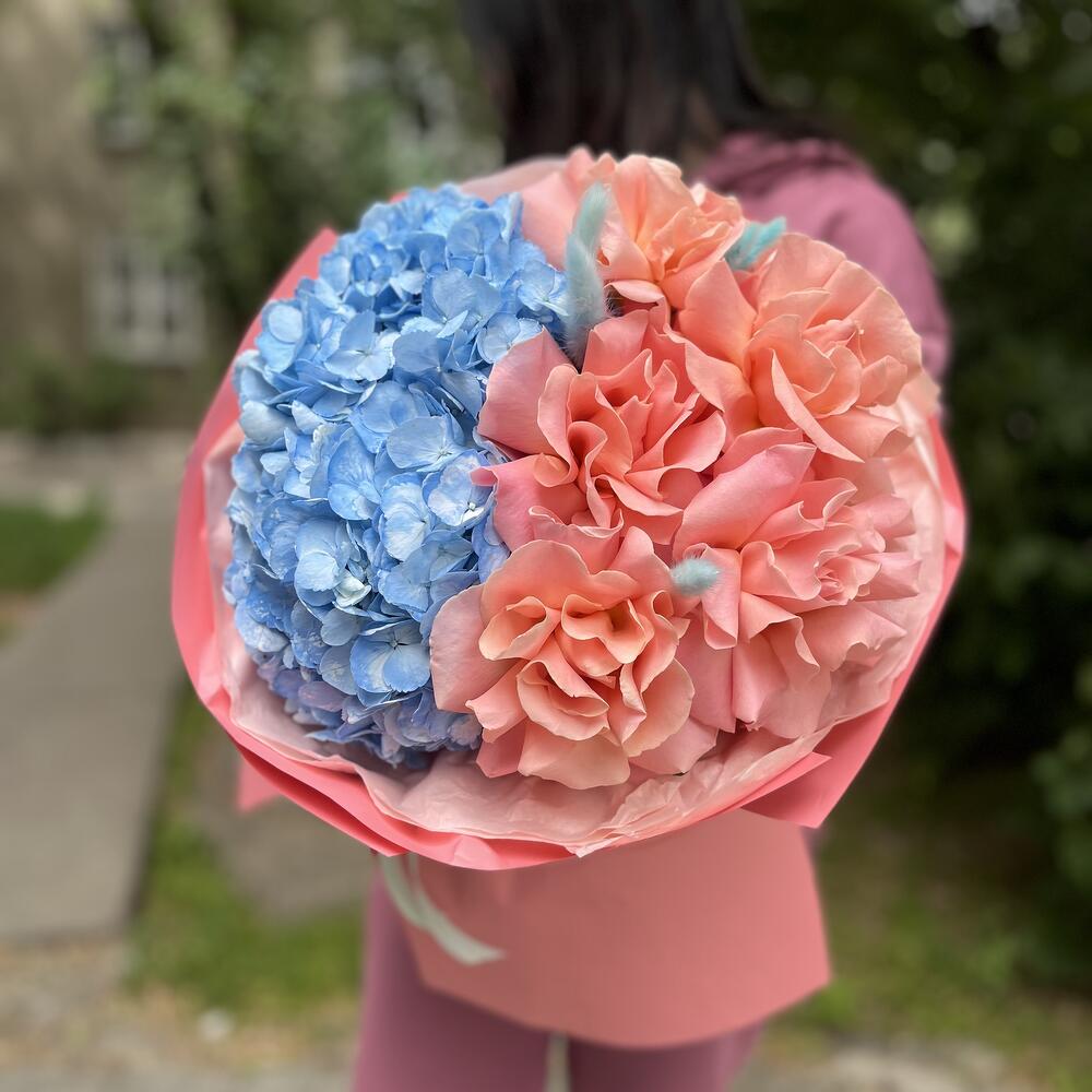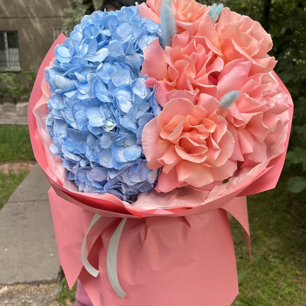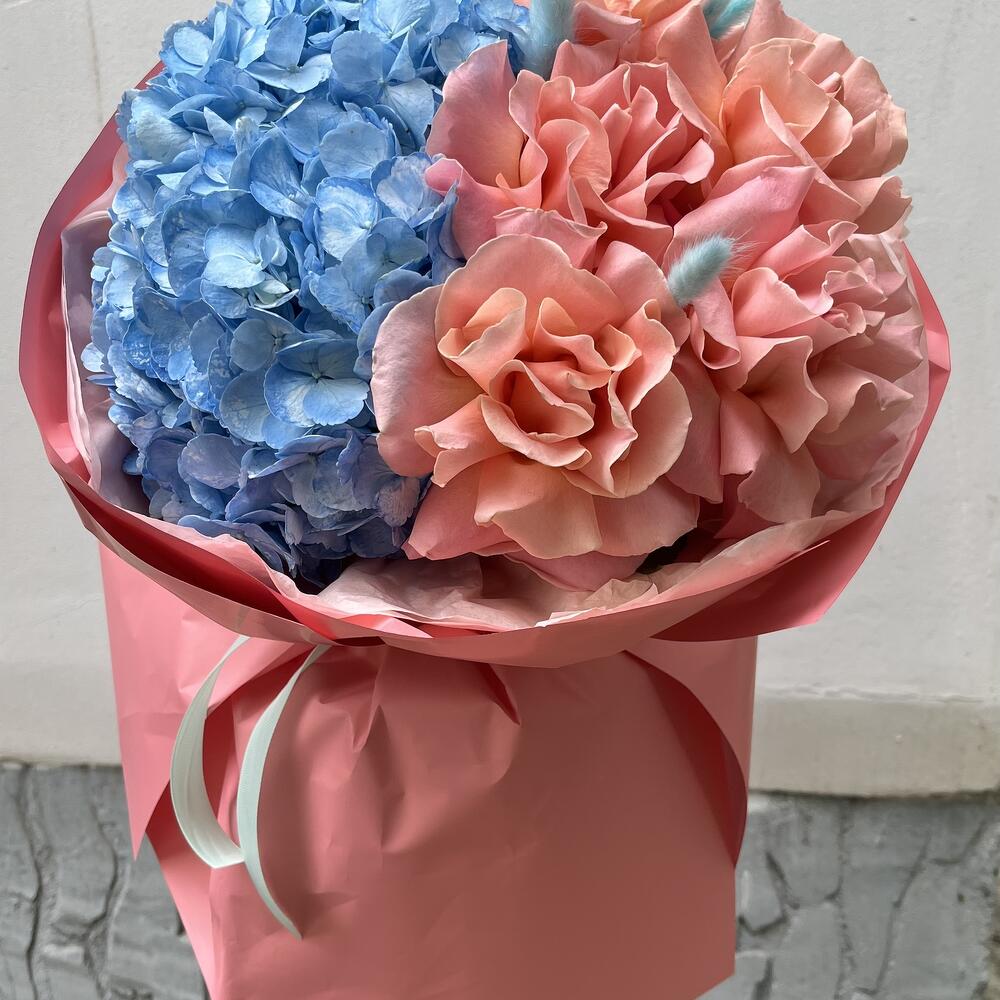 Hydrangea - 2 pcs Rose - 5 pcs Lagurus (dried flower) - 5 pcs