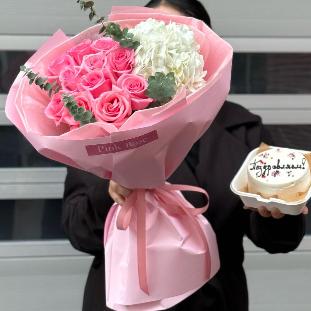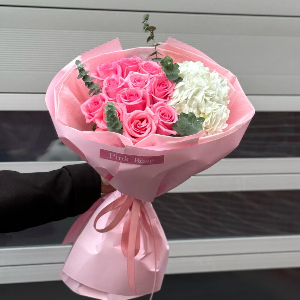 Hydrangea - 1 pcs Eucalyptus - 4 pcs Rose - 11 pcs