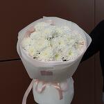 Букет пышных кустовых хризантем в белом оформлении. Максимум нежности