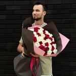 Букет из 51 красно белых роз - Высота 50 - 60 см. - Фирменное оформление. - Фирменный шоколад в подарок!