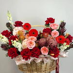 Oasis - 6 pcs gerbera mix - 6 pcs роза эквадор 50 см mix - 18 pcs леукосперум - 5 pcs гортензия колумбия mix - 3 pcs леукадендрон mix - 5 pcs пионовидная роза 50см - 7 pcs писташ mix - 5 pcs