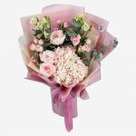 Hydrangea - 1 pcs Lisianthus - 2 pcs Peony - shaped rose - 3 pcs Spray rose - 3 pcs