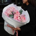 Hydrangea - 1 pcs Matthiola - 3 pcs Eucalyptus - 2 pcs Rose - 3 pcs