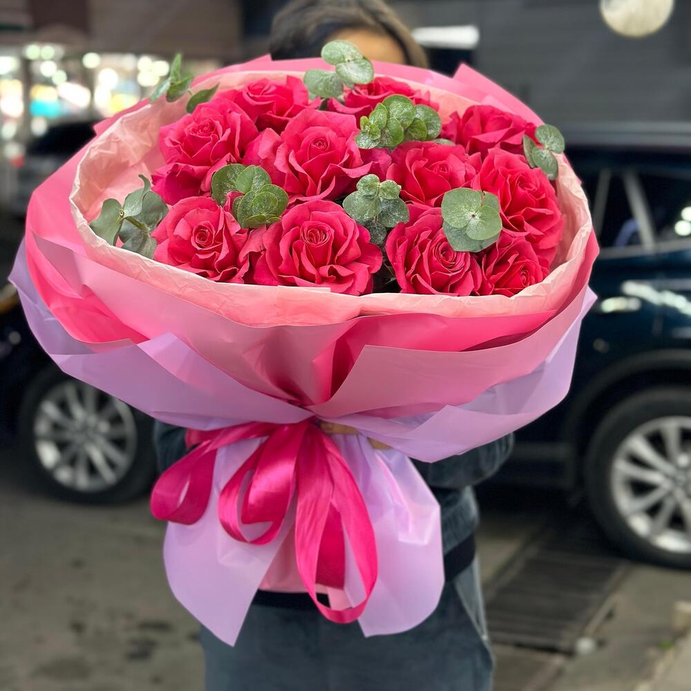 French Rose - 11 pcs Eucalyptus Baby Blue - 7 pcs
