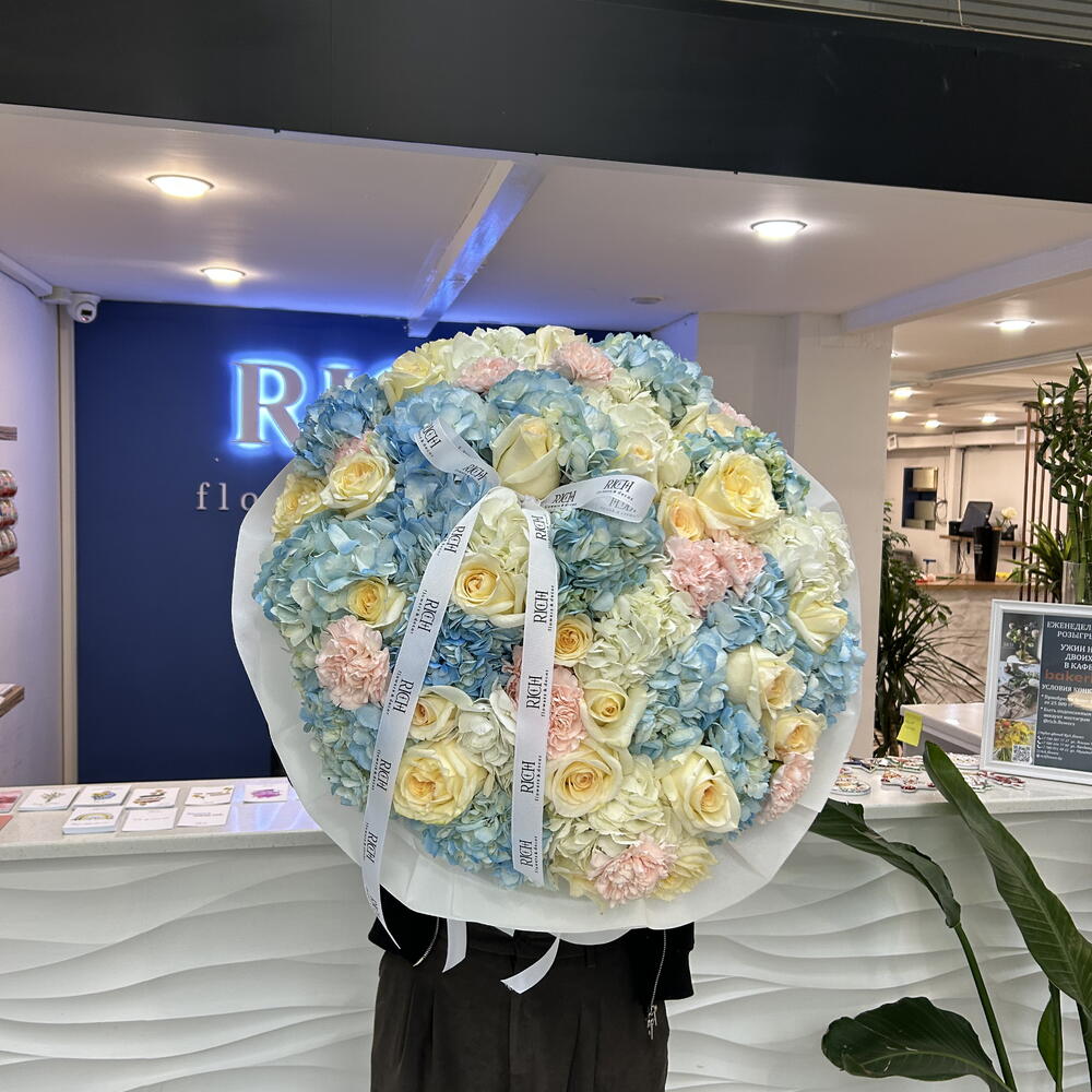 Hydrangea - 22 pcs Carnation - 11 pcs роза сортовая 40-50 см - 23 pcs