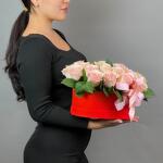 Воздушная композиция в форме сердца из розовых цветов. Подчеркните вашу заботу и любовь этим трогательным и стильным подарком.