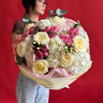 Hypericum - 2 pcs Hydrangea - 7 pcs Eucalyptus - 1 pcs peony - shaped roses - 7 pcs bush roses - 4 pcs