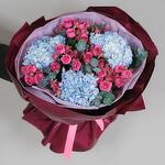 Hydrangea - 3 pcs Eucalyptus - 1 pcs кустовые розы sofia - 10 pcs