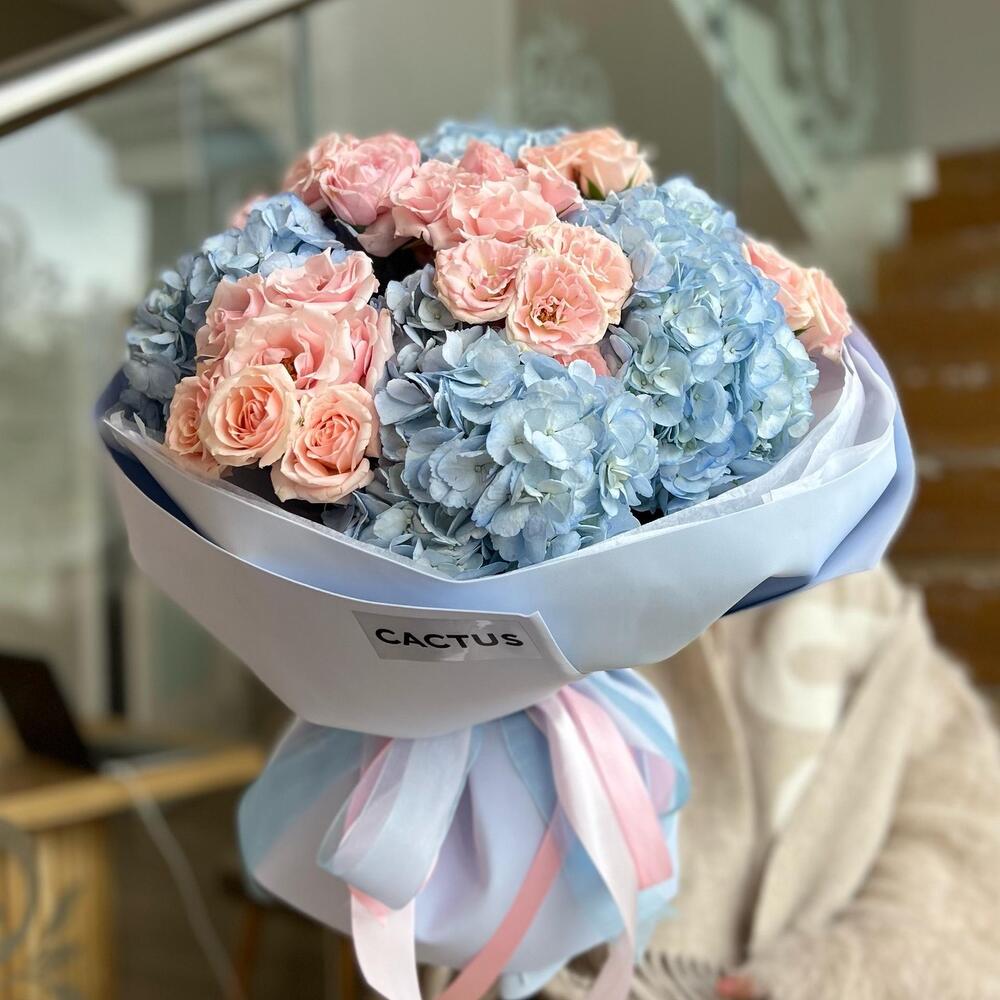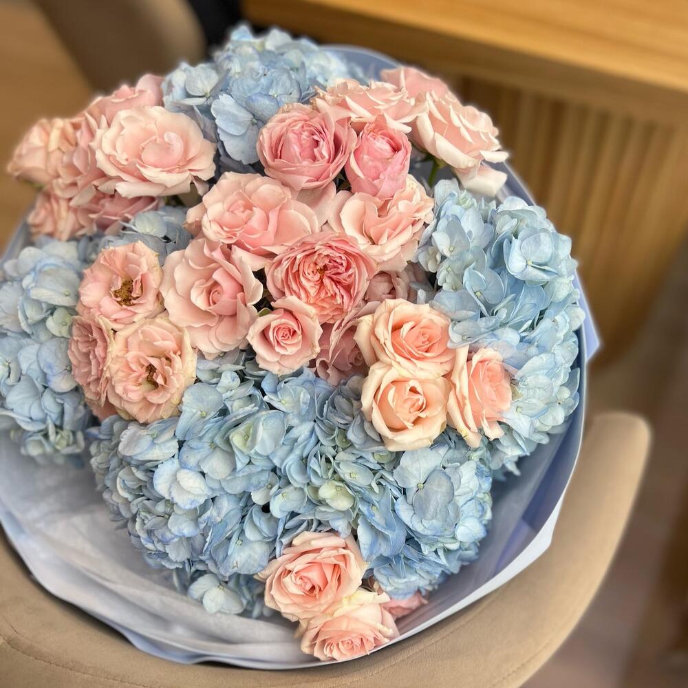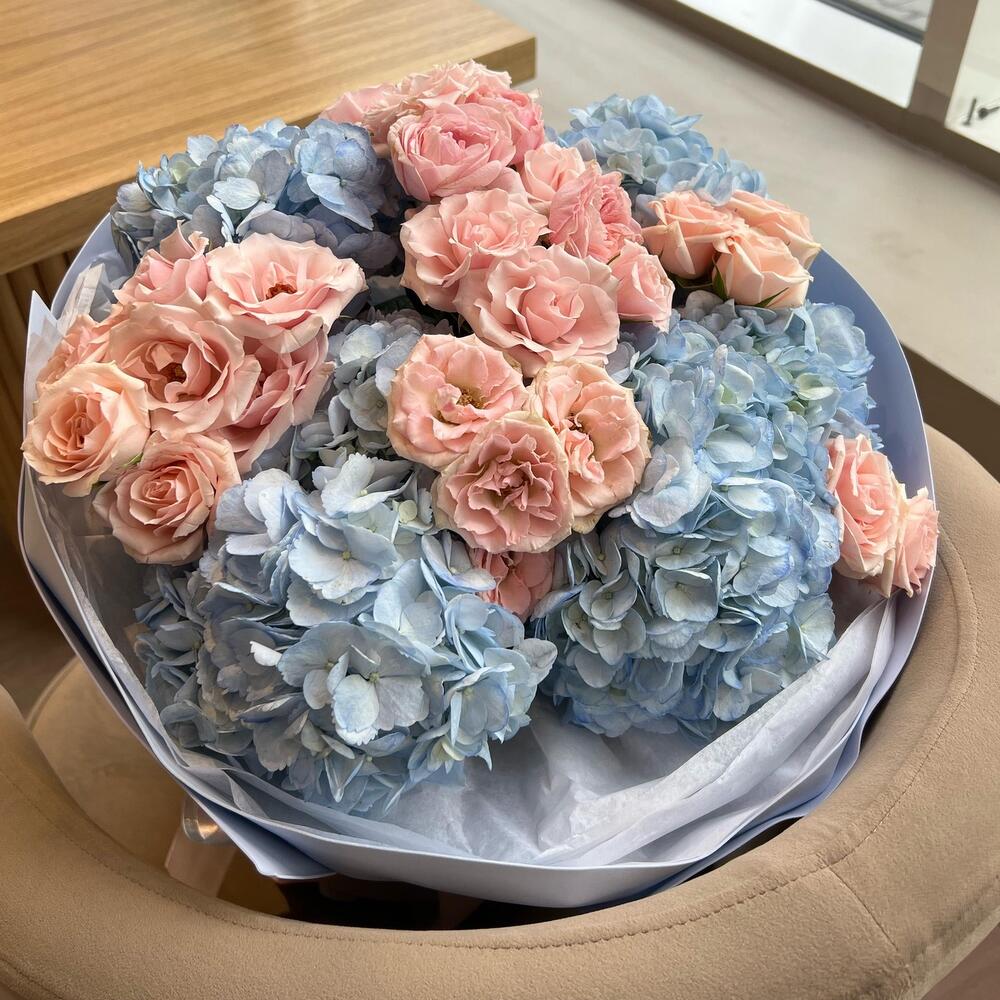 Bush rose - 8 pcs Blue hydrangea - 5 pcs