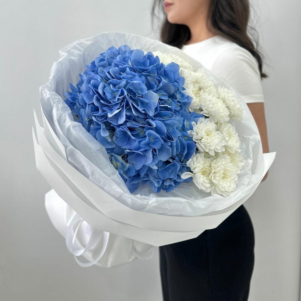 chrysanthemums - 3 pcs dutch hydrangea - 1 pcs