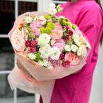 Lisianthus - 3 pcs Bush rose - 2 pcs Ecuador Rose - 3 pcs Designer packaging - 1 pcs Filin Green - 2 pcs bunch of asters - 2 pcs