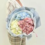Букет живых цветов из гортензий Указаны примерные размеры, чтобы вы могли представить внешний вид и масштаб, но фактически размеры могут немного отличаться.