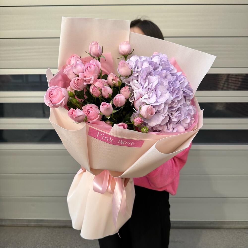Hydrangea - 1 pcs Bush rose - 6 pcs