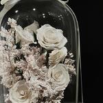 Glass flask - 1 pcs white stabilized roses - 5 pcs белые заснеженные искуственные ветви - 3 pcs