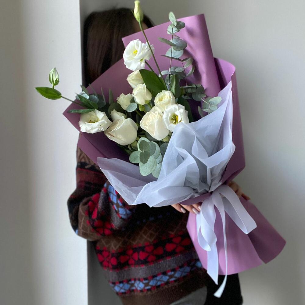 Rose - 2 pcs Bush rose - 1 pcs Eustoma - 1 pcs