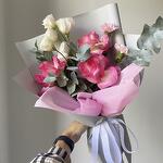Rose - 3 pcs Carnation - 2 pcs Eustoma - 1 pcs