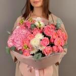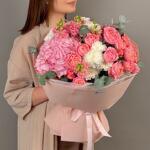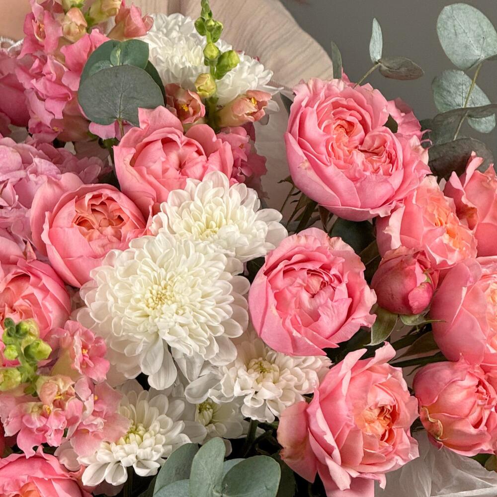 Hydrangea - 1 pcs Eucalyptus - 2 pcs Chrysanthemum - 3 pcs Snapdragon - 5 pcs rose spray - 4 pcs
