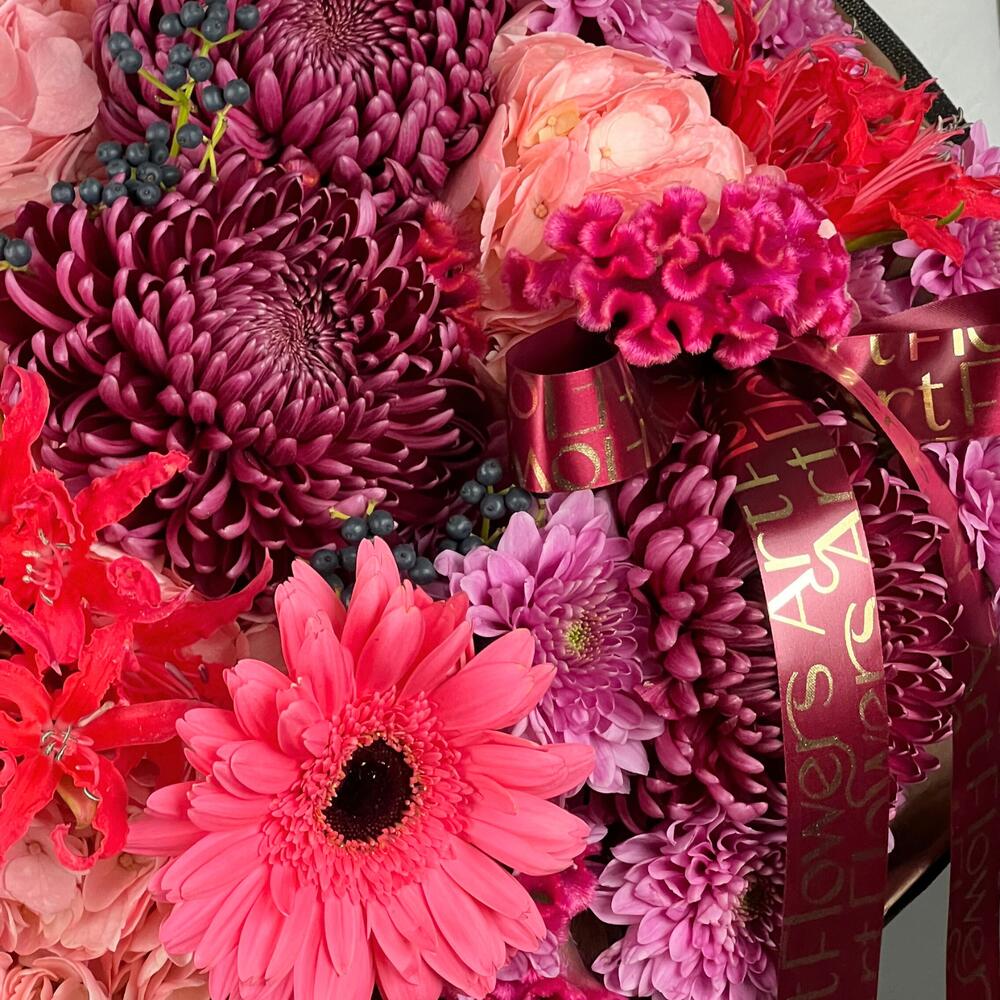 Яркий, чувственный и запоминающийся букет. Оттенки спелых ягод и закатного солнца делают его символом радости и любви. Идеален, чтобы выразить восхищение и внимание.
