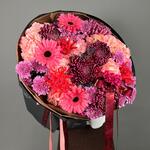 Viburnum - 2 pcs Hydrangea - 5 pcs Celosia - 3 pcs Chrysanthemum - 10 pcs Gerbera - 3 pcs
