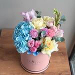 Astra - 1 pcs Hydrangea - 1 pcs Eucalyptus - 1 pcs Rose - 3 pcs Carnation - 1 pcs Gladiolus - 1 pcs Spray rose - 2 pcs