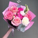 Carnation - 1 pcs Eustoma - 1 pcs roses - 5 pcs