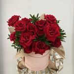 Hat box - 1 pcs Pistachio bunch - 1 pcs roses - 23 pcs
