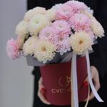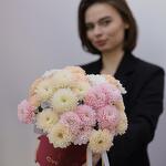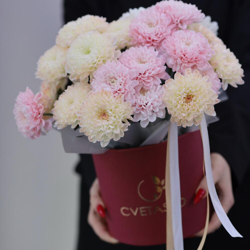 Пышные хризантемы в розовых и персиковых тонах в коробке — это утонченное и нежное сочетание, которое покоряет с первого взгляда. Розовый цвет символизирует романтику и теплоту, а персиковый добавляет мягкости и легкости, создавая гармоничную и изысканную композицию. Коробка подчеркивает современность такого оформления и делает букет практичным. Благодаря флористической губке внутри цветы долго сохраняют свою свежесть и красоту. Пышные соцветия хризантем создают объем и привлекают внимание своим очарованием. Такой нежный подарок идеально подойдет для романтического жеста, поздравления с днем рождения или просто как знак внимания. Композиция из хризантем в розово-персиковых тонах наполняет атмосферу теплом и уютом, оставляя самые приятные эмоции.