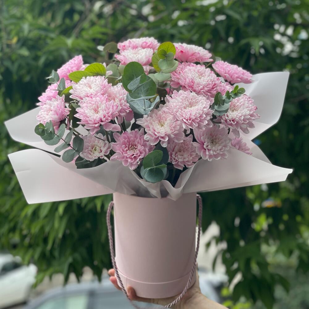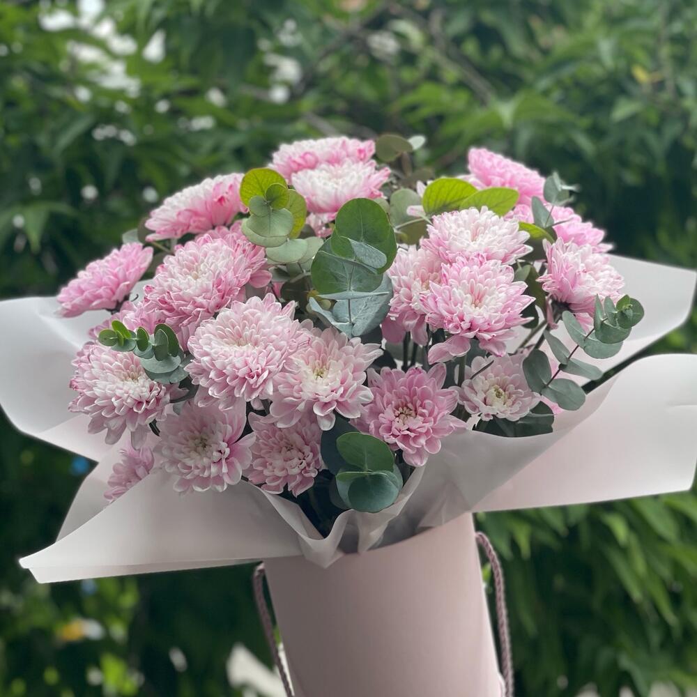 Eucalyptus cinerea - 9 pcs altai pink chrysanthemum - 5 pcs