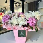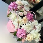 Bush rose 60 cm - 1 pcs roses 60 cm - 3 pcs rose white 60 cm - 2 pcs chrysanthemum bush 65 cm - 2 pcs хризантема одноголовая белая 60 см - 2 pcs гвоздика 70 см - 3 pcs