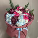 Hydrangea - 2 pcs Bush rose - 4 pcs Nobilis - 1 pcs chrysanthemum curler - 4 pcs natural cotton wool - 4 pcs