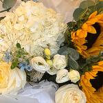Hydrangea - 1 pcs Eucalyptus - 5 pcs Packaging - 1 pcs Eustoma - 2 pcs Sunflower - 2 pcs Aquabox - 1 pcs A postcard with your wishes - 1 pcs The language of the input text is Russian, and it translates to "Tweedie" in English. - 2 pcs care instructions for the flowers - 1 pcs vitamins for flowers (crystal) - 1 pcs candy light rose - 2 pcs