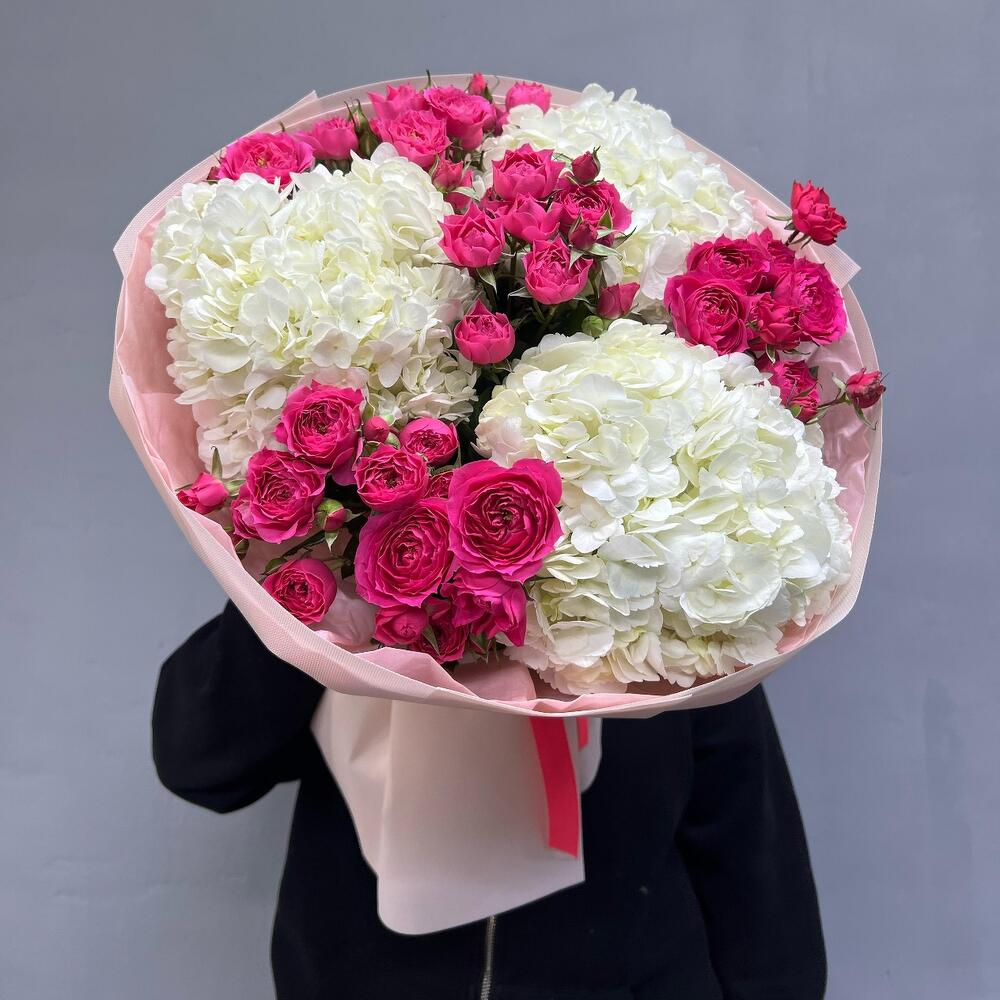 premium hydrangea - 3 pcs софия кустовая роза - 6 pcs