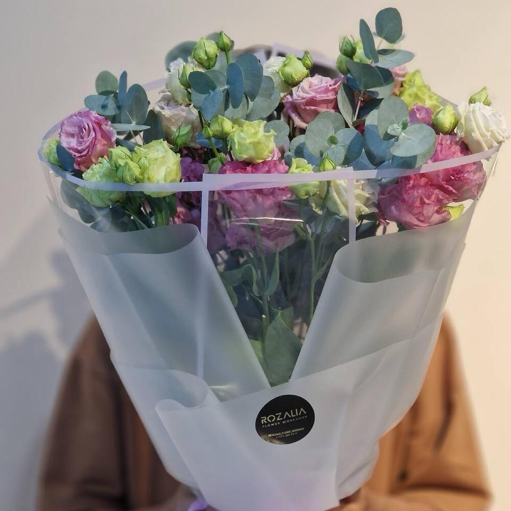 Eucalyptus - 3 pcs Eustoma - 9 pcs Decoration - 1 pcs